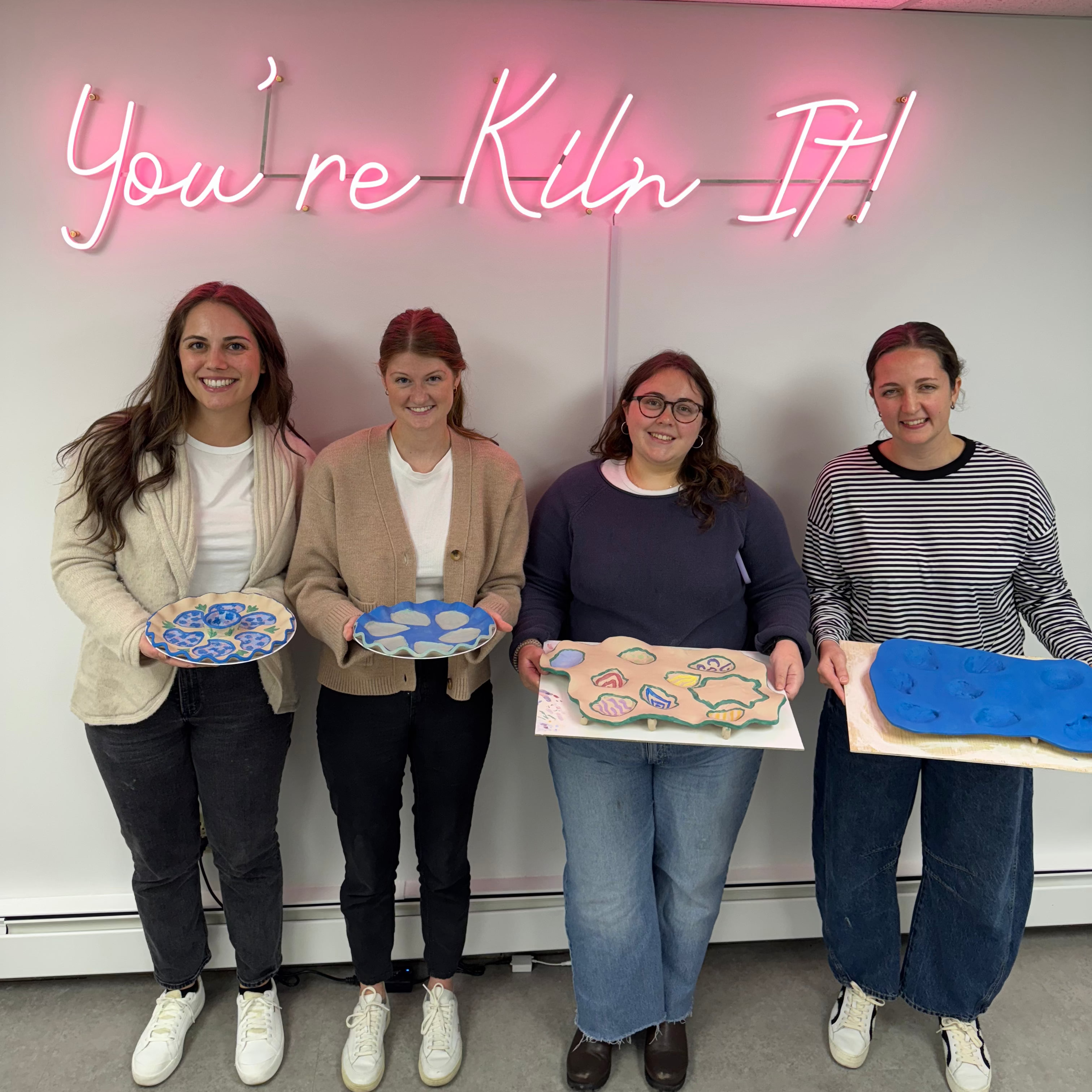 - Glazing + Kiln Firing: Our team will glaze + kiln-fire up to your charcuterie board in clear glaze so it is glossy, durable, waterproof & food-safe. Pieces will be ready for pickup in 6-8 weeks. Shipping is available for an additional fee here.