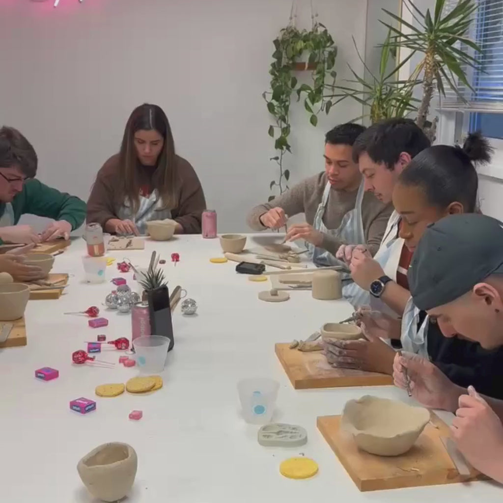 - Vibe: Takes place indoors in a relaxed, pottery studio setting. Expect a cozy, low-pressure creative escape with music, laughter, and a chance to unwind while you shape your pottery.